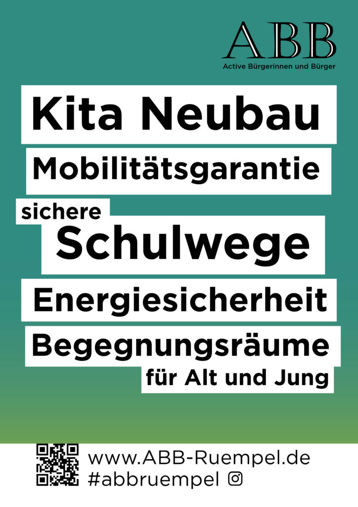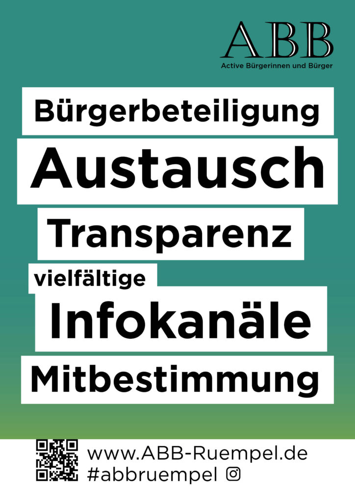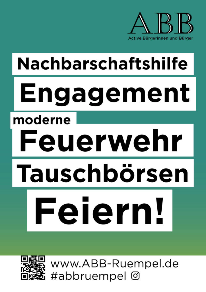 Bei Themen wie Kindergarten, Gemeinschaftshaus, Feuerwehr, Energieversorgung, Mobilität,Kultur und Wohnraum wollen wir als ABB mitreden und durch bürgernahe Kommunikation Transparenz über Optionen und Entscheidungen schaffen.